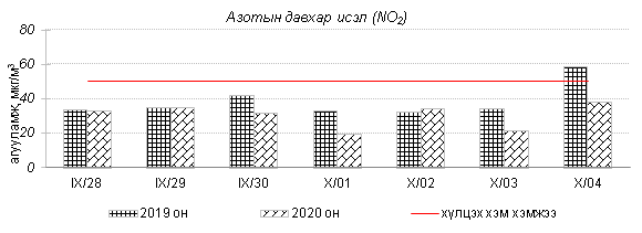 Улаанбаатар хотын агаарт түгээмэл бохирдуулах бодис хүхэрлэг хий /SO2/, азотын давхар исэл /NO2/, тоосонцор /PM10, PM2.5/, нүүрстөрөгчийн дутуу исэл /CO/, озон /O3/-ны агууламжийг тодорхойллоо.