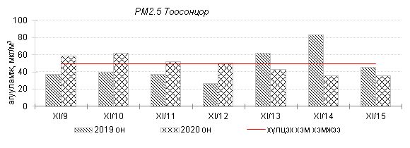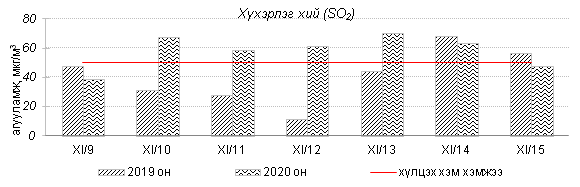 Улаанбаатар хотын агаарт түгээмэл бохирдуулах бодис хүхэрлэг хий /SO2/, азотын давхар исэл /NO2/, тоосонцор /PM10, PM2.5/, нүүрстөрөгчийн дутуу исэл /CO/, озон /O3/-ны агууламжийг тодорхойллоо.