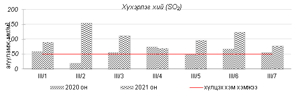 Улаанбаатар хотын агаарт түгээмэл бохирдуулах бодис хүхэрлэг хий /SO2/, азотын давхар исэл /NO2/, тоосонцор /PM10, PM2.5/, нүүрстөрөгчийн дутуу исэл /CO/, озон /O3/-ы агууламжийг тодорхойллоо.