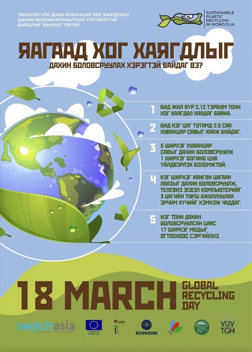 Эх сурвалж: “Монгол Улс дахь хуванцар хог хаягдлын дахин боловсруулалтын  тогтвортой байдлыг  хангах төсөл"