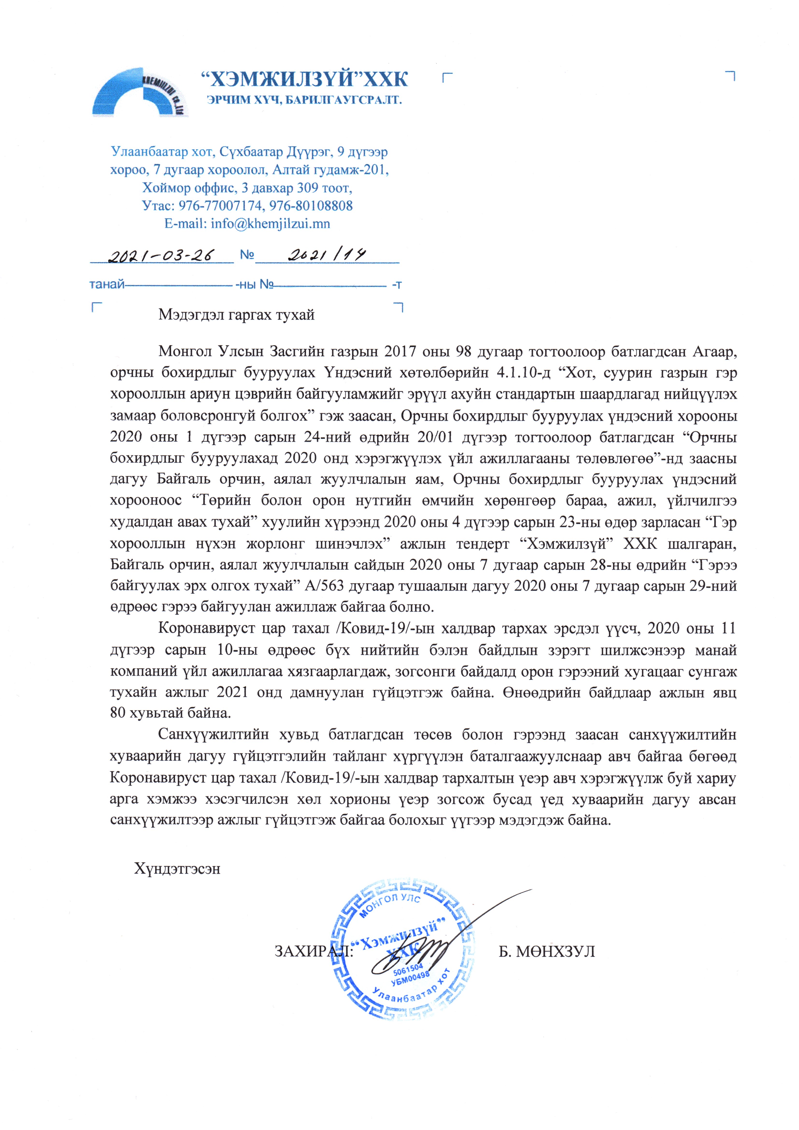 Энэхүү нийтлэл гарсантай холбогдуулан гэрээний дагуу ажил гүйцэтгэж буй дээрхи хоёр компаниас  ирүүлсэн  “МЭДЭГДЭЛ-тэй танилцахыг хүсье.
