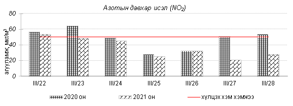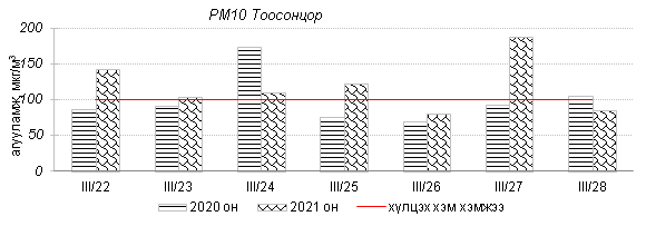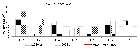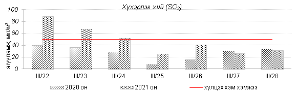 Улаанбаатар хотын агаарт түгээмэл бохирдуулах бодис хүхэрлэг хий /SO2/, азотын давхар исэл /NO2/, тоосонцор /PM10, PM2.5/, нүүрстөрөгчийн дутуу исэл /CO/, озон /O3/-ы агууламжийг тодорхойллоо.