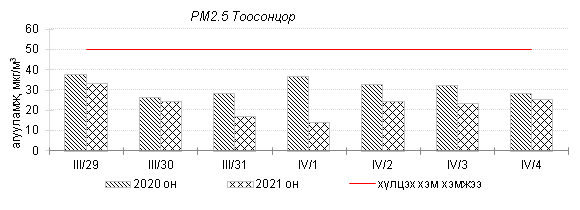 Улаанбаатар хотын агаарт түгээмэл бохирдуулах бодис хүхэрлэг хий /SO2/, азотын давхар исэл /NO2/, тоосонцор /PM10, PM2.5/, нүүрстөрөгчийн дутуу исэл /CO/, озон /O3/-ы агууламжийг тодорхойллоо.