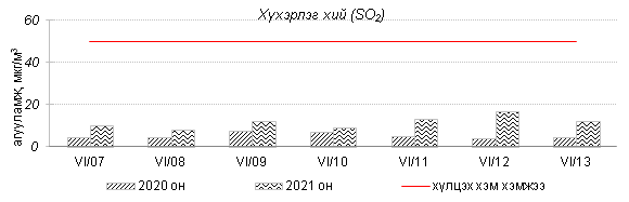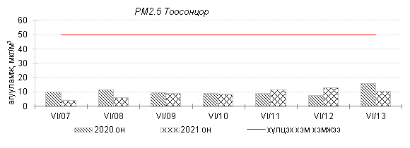 Улаанбаатар хотын агаарт түгээмэл бохирдуулах бодис хүхэрлэг хий /SO2/, азотын давхар исэл /NO2/, тоосонцор /PM10, PM2.5/, нүүрстөрөгчийн дутуу исэл /CO/, озон /O3/-ы агууламжийг тодорхойллоо.