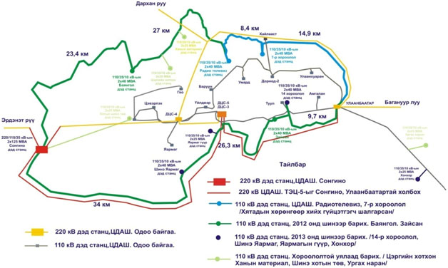 Мөн ТЭЦ-5-ыг Сонгино болон Улаанбаатар дэд станцуудтай холбох 220 кВ-ын 2х60 км ЦДАШ-ын ажлын зургийн яаралтай хийлгэх, түүнчлэн 2013 оны улсын төсвийн хөрөнгө оруулалтаар хийлгэх шаардлагатай байна.