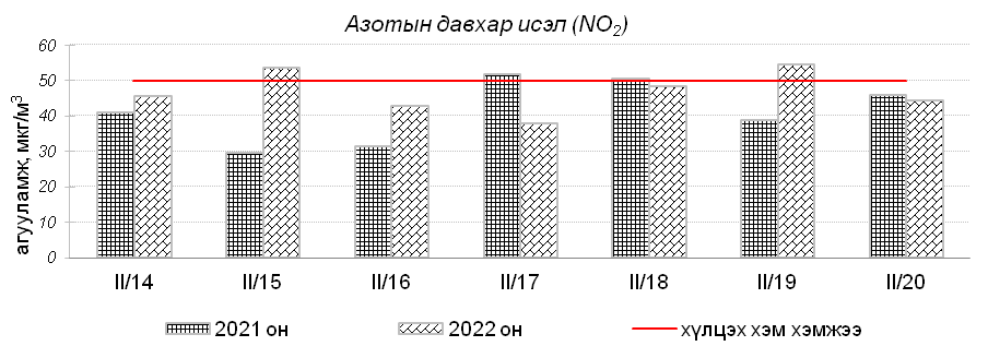 Улаанбаатар хотын агаарт түгээмэл бохирдуулах бодис хүхэрлэг хий /SO2/, азотын давхар исэл /NO2/, тоосонцор /PM10, PM2.5/, нүүрстөрөгчийн дутуу исэл /CO/, озон /O3/-ы агууламжийг тодорхойллоо.