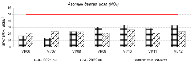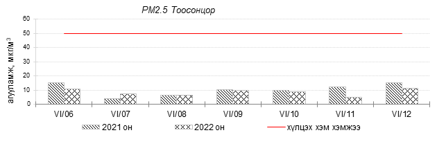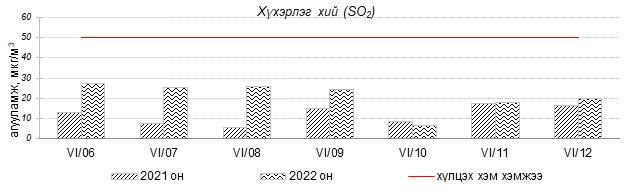 Улаанбаатар хотын агаарт түгээмэл бохирдуулах бодис хүхэрлэг хий /SO2/, азотын давхар исэл /NO2/, тоосонцор /PM10, PM2.5/, нүүрстөрөгчийн дутуу исэл /CO/, озон /O3/-ы агууламжийг тодорхойллоо.