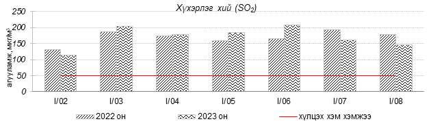 Улаанбаатар хотын агаарт түгээмэл бохирдуулах бодис хүхэрлэг хий /SO2/, азотын давхар исэл /NO2/, тоосонцор /PM10, PM2.5/, нүүрстөрөгчийн дутуу исэл /CO/, озон /O3/-ы агууламжийг тодорхойллоо.