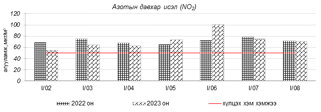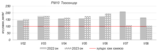 Өнгөрсөн 7 хоногийн агаарын чанарын хяналт шинжилгээний дүнгээр Улаанбаатар хотын агаарын чанар 2023 оны 01 дүгээр сарын 02-оос 08-ны өдрүүдэд 100-н айл, Толгойт, Нисэх, 13-р хороолол, Баруун 4-н зам, Амгалан, Цахилгаан станц, Мишээл экспо, Зайсан, Ургах наран хороолол орчим “Бага бохирдолтой”, 1-р хороолол, Зурагт, 5-н буудал, Налайх, Шархад орчим “Бохирдолтой”, Хайлааст орчим “Их бохирдолтой”, Баянхошуу орчим “Маш их бохирдолтой” түвшинд хүрсэн байна. Дэлгэрэнгүйг эндээс үзнэ үү.