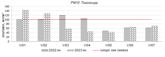 Улаанбаатар хотын агаарт түгээмэл бохирдуулах бодис хүхэрлэг хий /SO2/, азотын давхар исэл /NO2/, тоосонцор /PM10, PM2.5/, нүүрстөрөгчийн дутуу исэл /CO/, озон /O3/-ны агууламжийг тодорхойллоо.