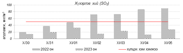 Улаанбаатар хотын агаарт түгээмэл бохирдуулах бодис хүхэрлэг хий /SO2/, азотын давхар исэл /NO2/, тоосонцор /PM10, PM2.5/, нүүрстөрөгчийн дутуу исэл /CO/, озон /O3/-ны агууламжийг тодорхойллоо.