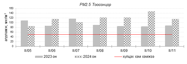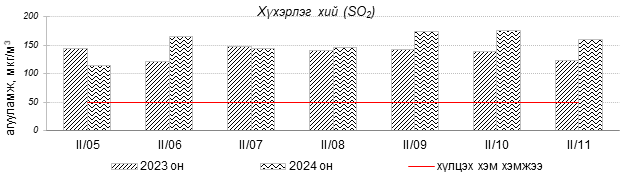 Улаанбаатар хотын агаарт түгээмэл бохирдуулах бодис хүхэрлэг хий /SO2/, азотын давхар исэл /NO2/, тоосонцор /PM10, PM2.5/, нүүрстөрөгчийн дутуу исэл /CO/, озон /O3/-ны агууламжийг тодорхойллоо.