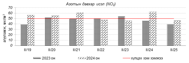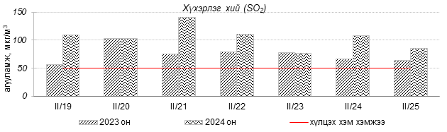 Улаанбаатар хотын агаарт түгээмэл бохирдуулах бодис хүхэрлэг хий /SO2/, азотын давхар исэл /NO2/, тоосонцор /PM10, PM2.5/, нүүрстөрөгчийн дутуу исэл /CO/, озон /O3/-ны агууламжийг тодорхойллоо.