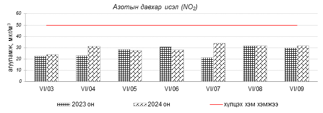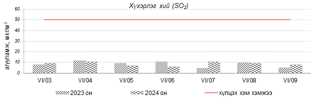 Улаанбаатар хотын агаарт түгээмэл бохирдуулах бодис хүхэрлэг хий /SO2/, азотын давхар исэл /NO2/, тоосонцор /PM10, PM2.5/, нүүрстөрөгчийн дутуу исэл /CO/, озон /O3/-ны агууламжийг тодорхойллоо.