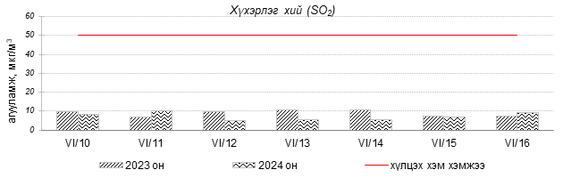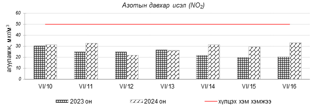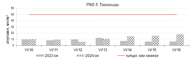 Улаанбаатар хотын агаарт түгээмэл бохирдуулах бодис хүхэрлэг хий /SO2/, азотын давхар исэл /NO2/, тоосонцор /PM10, PM2.5/, нүүрстөрөгчийн дутуу исэл /CO/, озон /O3/-ны агууламжийг тодорхойллоо.