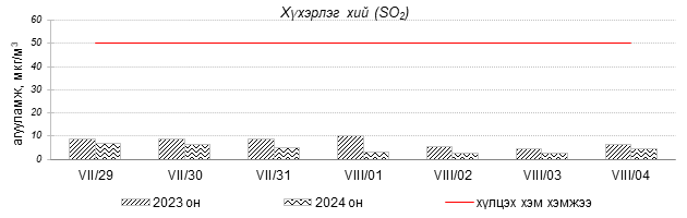 Улаанбаатар хотын агаарт түгээмэл бохирдуулах бодис хүхэрлэг хий /SO2/, азотын давхар исэл /NO2/, тоосонцор /PM10, PM2.5/, нүүрстөрөгчийн дутуу исэл /CO/, озон /O3/-ны агууламжийг тодорхойллоо.
