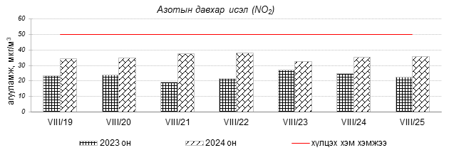 Улаанбаатар хотын агаарт түгээмэл бохирдуулах бодис хүхэрлэг хий /SO2/, азотын давхар исэл /NO2/, тоосонцор /PM10, PM2.5/, нүүрстөрөгчийн дутуу исэл /CO/, озон /O3/-ны агууламжийг тодорхойллоо.