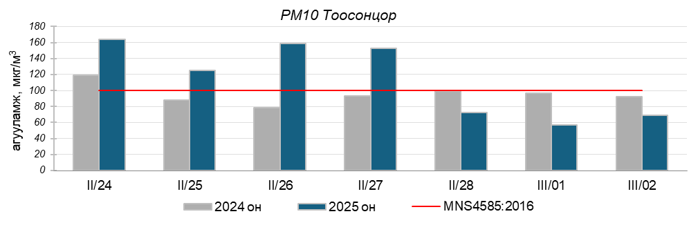 Улаанбаатар хотын агаарт түгээмэл бохирдуулах бодис хүхэрлэг хий /SO2/, азотын давхар исэл /NO2/, тоосонцор /PM10, PM2.5/, нүүрстөрөгчийн дутуу исэл /CO/, озон /O3/-ны агууламжийг тодорхойллоо.