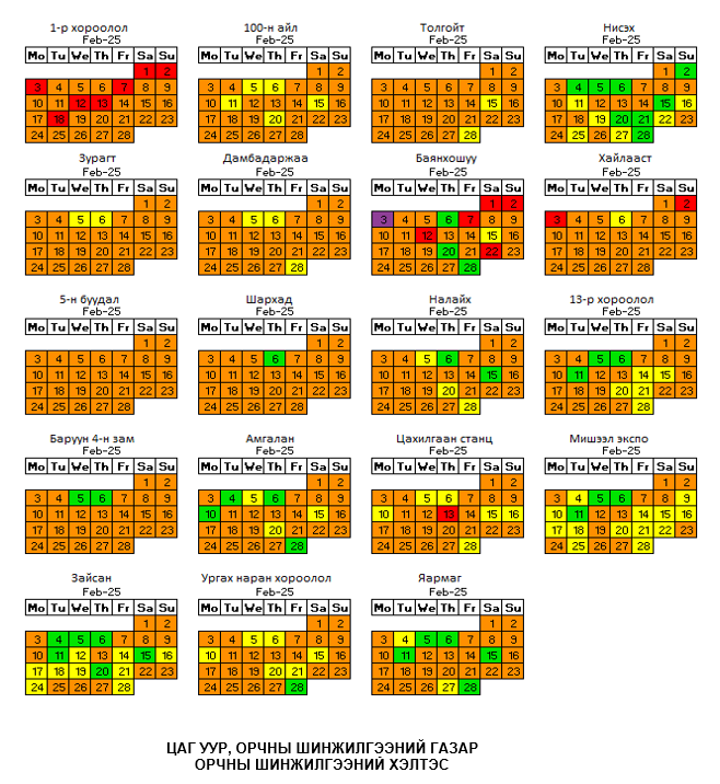 Улаанбаатар хотын 2025 оны 02 дугаар сарын агаар бохирдуулах гол бохирдуулагч бодис тус бүрийн сарын дундаж агууламжийг дараах зурагт харууллаа. (Зураг 1- 9)