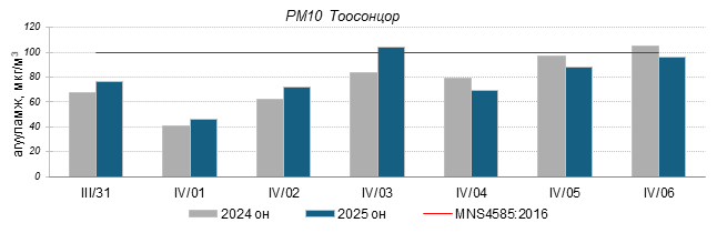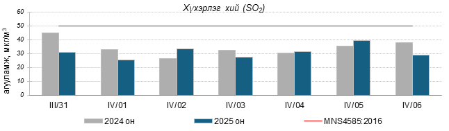 Улаанбаатар хотын агаарт түгээмэл бохирдуулах бодис хүхэрлэг хий /SO2/, азотын давхар исэл /NO2/, тоосонцор /PM10, PM2.5/, нүүрстөрөгчийн дутуу исэл /CO/, озон /O3/-ны агууламжийг тодорхойллоо.