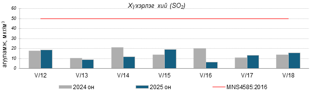 Улаанбаатар хотын агаарт түгээмэл бохирдуулах бодис хүхэрлэг хий /SO2/, азотын давхар исэл /NO2/, тоосонцор /PM10, PM2.5/, нүүрстөрөгчийн дутуу исэл /CO/, озон /O3/-ны агууламжийг тодорхойллоо.