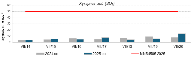 Улаанбаатар хотын агаарт түгээмэл бохирдуулах бодис хүхэрлэг хий /SO2/, азотын давхар исэл /NO2/, тоосонцор /PM10, PM2.5/, нүүрстөрөгчийн дутуу исэл /CO/, озон /O3/-ны агууламжийг тодорхойллоо.