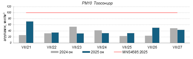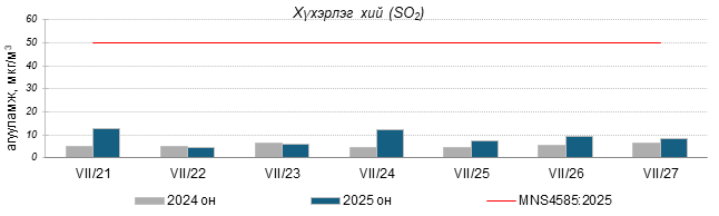 Улаанбаатар хотын агаарт түгээмэл бохирдуулах бодис хүхэрлэг хий /SO2/, азотын давхар исэл /NO2/, тоосонцор /PM10, PM2.5/, нүүрстөрөгчийн дутуу исэл /CO/, озон /O3/-ны агууламжийг тодорхойллоо.