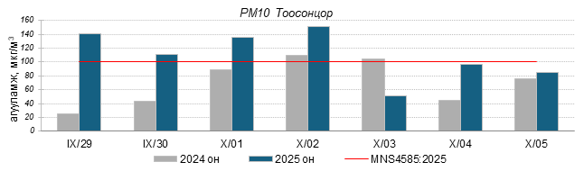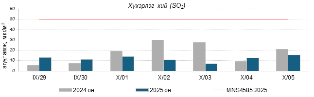 Улаанбаатар хотын агаарт түгээмэл бохирдуулах бодис хүхэрлэг хий /SO2/, азотын давхар исэл /NO2/, тоосонцор /PM10, PM2.5/, нүүрстөрөгчийн дутуу исэл /CO/, озон /O3/-ны агууламжийг тодорхойллоо.