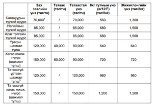 Түүхий нүүрсний үнэ өссөөр 2012-2013 оны өвөл 1 тонн нүүрсний харьцуулах жишиг үнэ 110,000 төгрөг гэж НАЧА-наас тогтоосон. Үйлдвэрлэгчийн үнийн дээд хязгаарыг дээрх жишиг үнэ дээр татаасын үнийг нэмж хагас коксжсон нүүрс ба үртсэн шахмал түлшний хувьд 150,000 төгрөг, хагас коксжсон нүүрсэн шахмал түлшний хувьд 170,000 төгрөг гэж тогтоогоод байна.