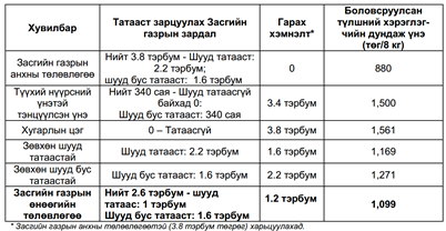 Түүнчлэн боловсруулсан түлшний үнийг хөнгөлөх арга хэмжээг (татаасыг) зөвхөн санхүүгийн боломж муутай өрх, хэрэглэгчдэд чиглүүлснээр татааст зарцуулах зардлыг нэлээд хэмжээгээр бууруулах боломжтой байна.