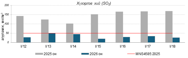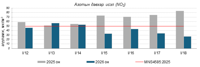 Улаанбаатар хотын агаарт түгээмэл бохирдуулах бодис хүхэрлэг хий /SO2/, азотын давхар исэл /NO2/, тоосонцор /PM10, PM2.5/, нүүрстөрөгчийн дутуу исэл /CO/, озон /O3/-ны агууламжийг тодорхойллоо.