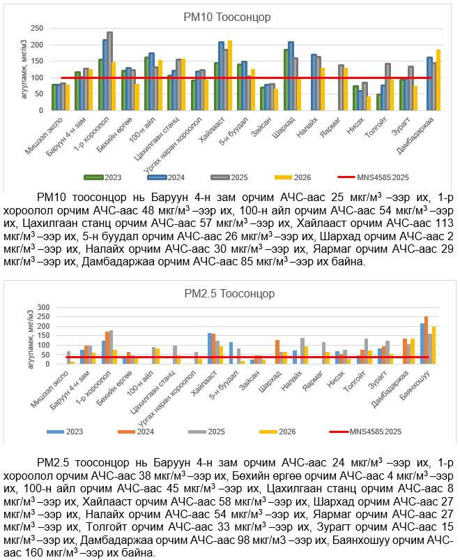 УЛААНБААТАР ХОТЫН АГААРЫН ЧАНАРЫН ХЯНАЛТ ШИНЖИЛГЭЭНИЙ ХОНОГИЙН МЭДЭЭ /2026.03.04/