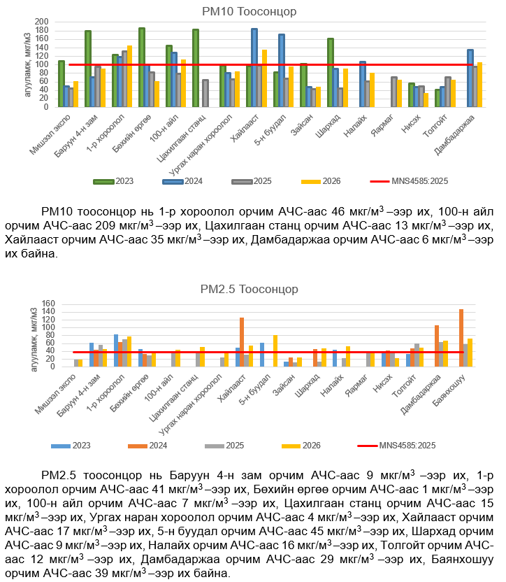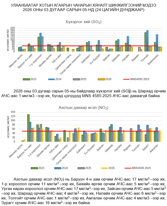УЛААНБААТАР ХОТЫН АГААРЫН ЧАНАРЫН ХЯНАЛТ ШИНЖИЛГЭЭНИЙ ХОНОГИЙН МЭДЭЭ /2026.04.29/