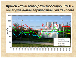 Зураг2 Өнгөрсөн20 жилийн хугацаанд гарсан Краков хотын агаар дахь тоосонцор /PM10/-ын хэмжээний өөрчлөлт