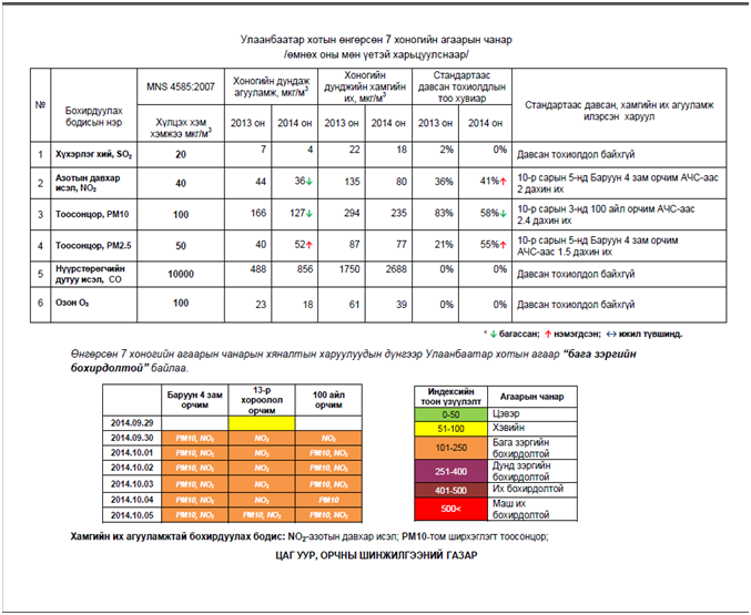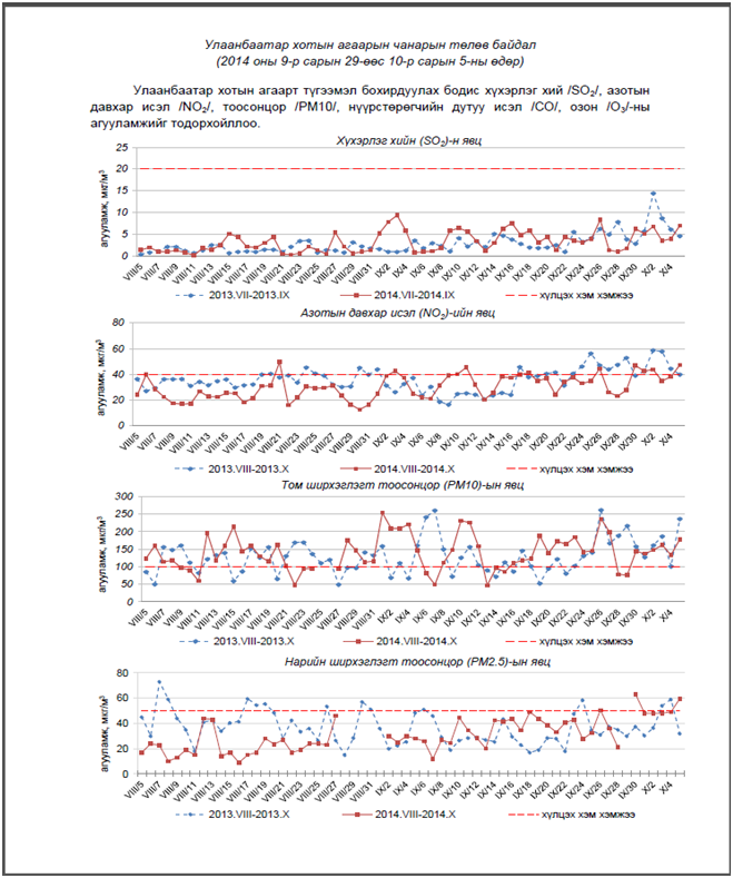Улаанбаатар хотын агаарын чанарын төлөв байдлыг хавсралтаас үзнэ үү.