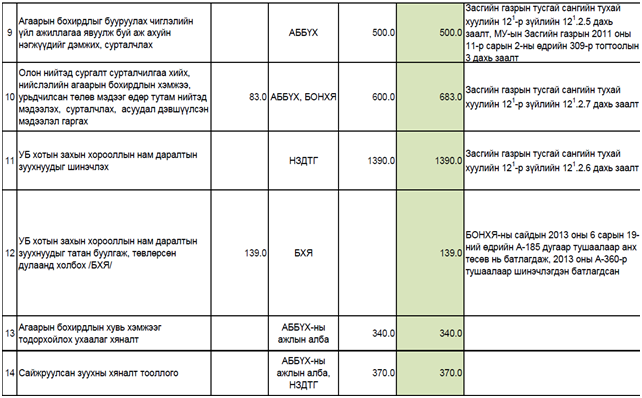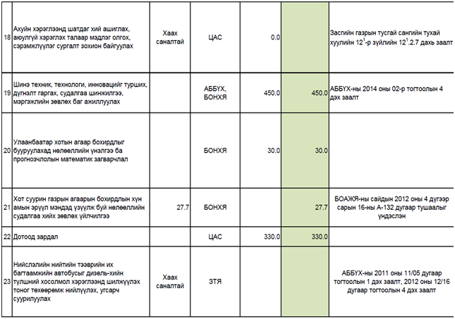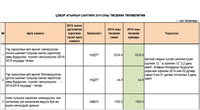Цэвэр агаар сангийн 2014 оны төсөв