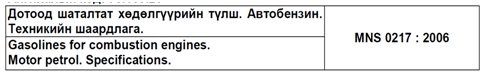 Автомашины бензиний физик химийн болон ашиглалтын үзүүлэлтүүд.