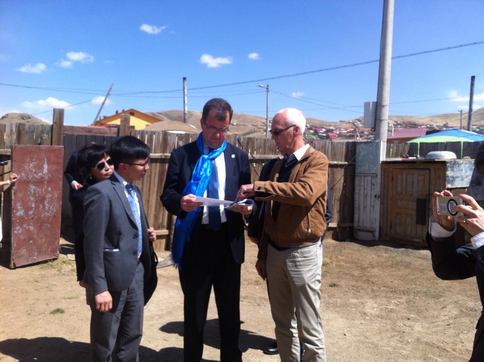 Дэлхийн банк группын гүйцэтгэх захирал, Санхүү хариуцсан захирал Бэртранд Бадрэ тэргүүтэй төлөөлөгчид УБЦАТ-р хэрэгжүүлж буй бүрэн шаталттай сайжруулсан зуухны төсөлд хамрагдсан БЗД-ийн өрхөөр зочилж, зуухны хэрэглээ, түлшний хэмнэлт болон агаарын бохирдлыг бууруулахад үзүүлж буй эерэг нөлөөллийн талаар гэрийн эзэгтэйтэй ярилцлаа. Мөн УБЦАТ-ийн удирдах нэгж бүоэн шаталттай сайжруулсан зуухны төсөл хөтөлбөрийн талаар товч танилцуулгыг төлөөлөгчдөд өглөө.