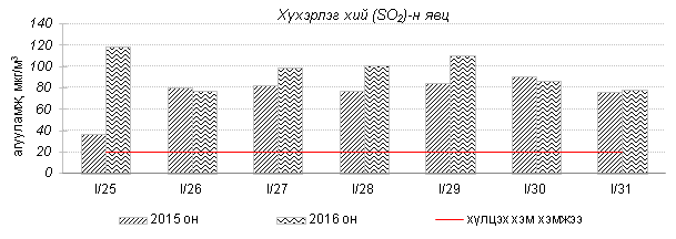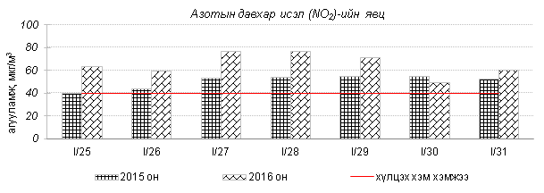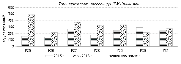 Улаанбаатар хотын агаарт түгээмэл бохирдуулах бодис хүхэрлэг хий /SO2/, азотын давхар исэл /NO2/, тоосонцор /PM10, PM2.5/, нүүрстөрөгчийн дутуу исэл /CO/, озон /O3/-ы агууламжийг тодорхойллоо.