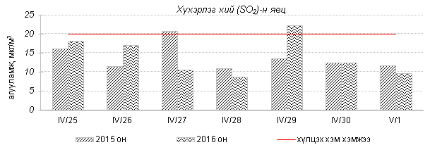 Өнгөрсөн 7 хоногийн агаарын чанарын хяналт шинжилгээний дүнгээр Улаанбаатар хотын гэр хороолол, төв автозамтай ойролцоо газруудад агаар “Бага” зэргийн бохирдолтой байна. Дэлгэрэнгүй мэдээг хавсралтаас үзнэ үү.