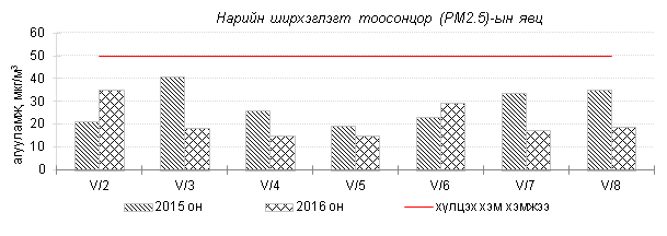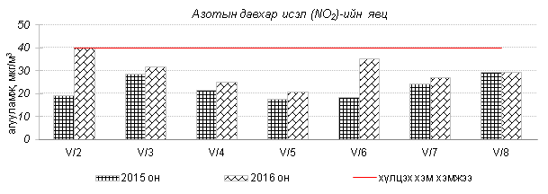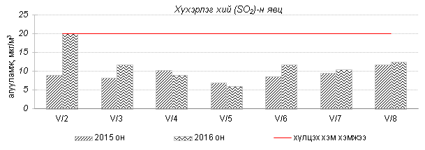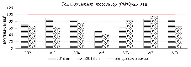 Улаанбаатар хотын агаарт түгээмэл бохирдуулах бодис хүхэрлэг хий /SO2/, азотын давхар исэл /NO2/, тоосонцор /PM10, PM2.5/, нүүрстөрөгчийн дутуу исэл /CO/, озон /O3/-ы агууламжийг тодорхойллоо.