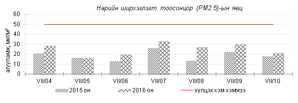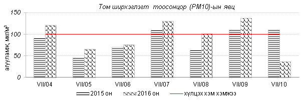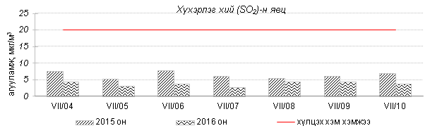 Улаанбаатар хотын агаарт түгээмэл бохирдуулах бодис хүхэрлэг хий /SO2/, азотын давхар исэл /NO2/, тоосонцор /PM10, PM2.5/, нүүрстөрөгчийн дутуу исэл /CO/, озон /O3/-ы агууламжийг тодорхойллоо.