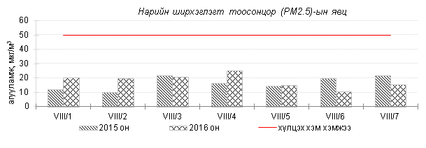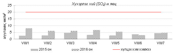 Улаанбаатар хотын агаарт түгээмэл бохирдуулах бодис хүхэрлэг хий /SO2/, азотын давхар исэл /NO2/, тоосонцор /PM10, PM2.5/, нүүрстөрөгчийн дутуу исэл /CO/, озон /O3/-ы агууламжийг тодорхойллоо.