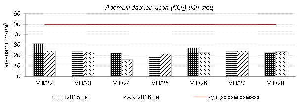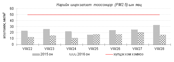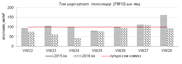 Улаанбаатар хотын агаарт түгээмэл бохирдуулах бодис хүхэрлэг хий /SO2/, азотын давхар исэл /NO2/, тоосонцор /PM10, PM2.5/, нүүрстөрөгчийн дутуу исэл /CO/, озон /O3/-ы агууламжийг тодорхойллоо.