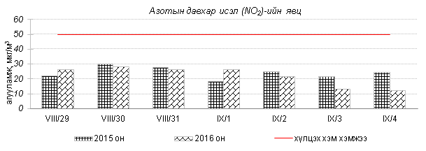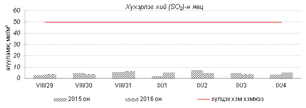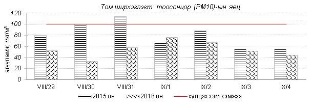 Улаанбаатар хотын агаарт түгээмэл бохирдуулах бодис хүхэрлэг хий /SO2/, азотын давхар исэл /NO2/, тоосонцор /PM10, PM2.5/, нүүрстөрөгчийн дутуу исэл /CO/, озон /O3/-ы агууламжийг тодорхойллоо.