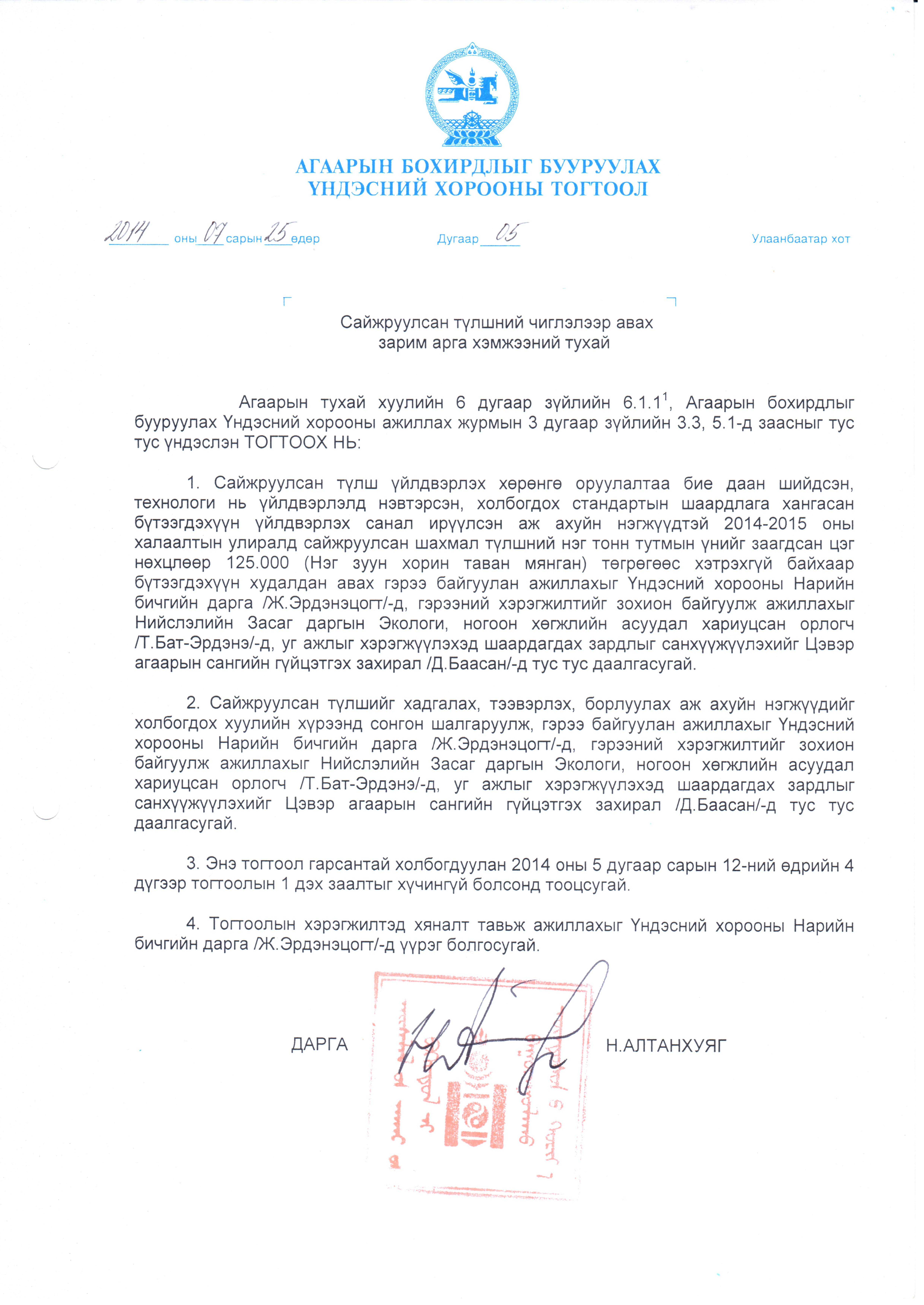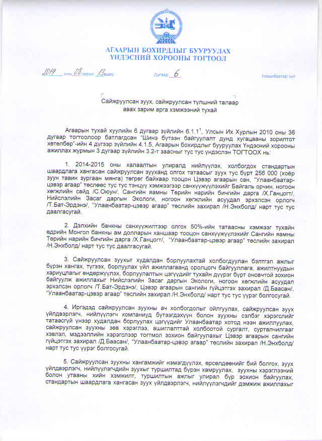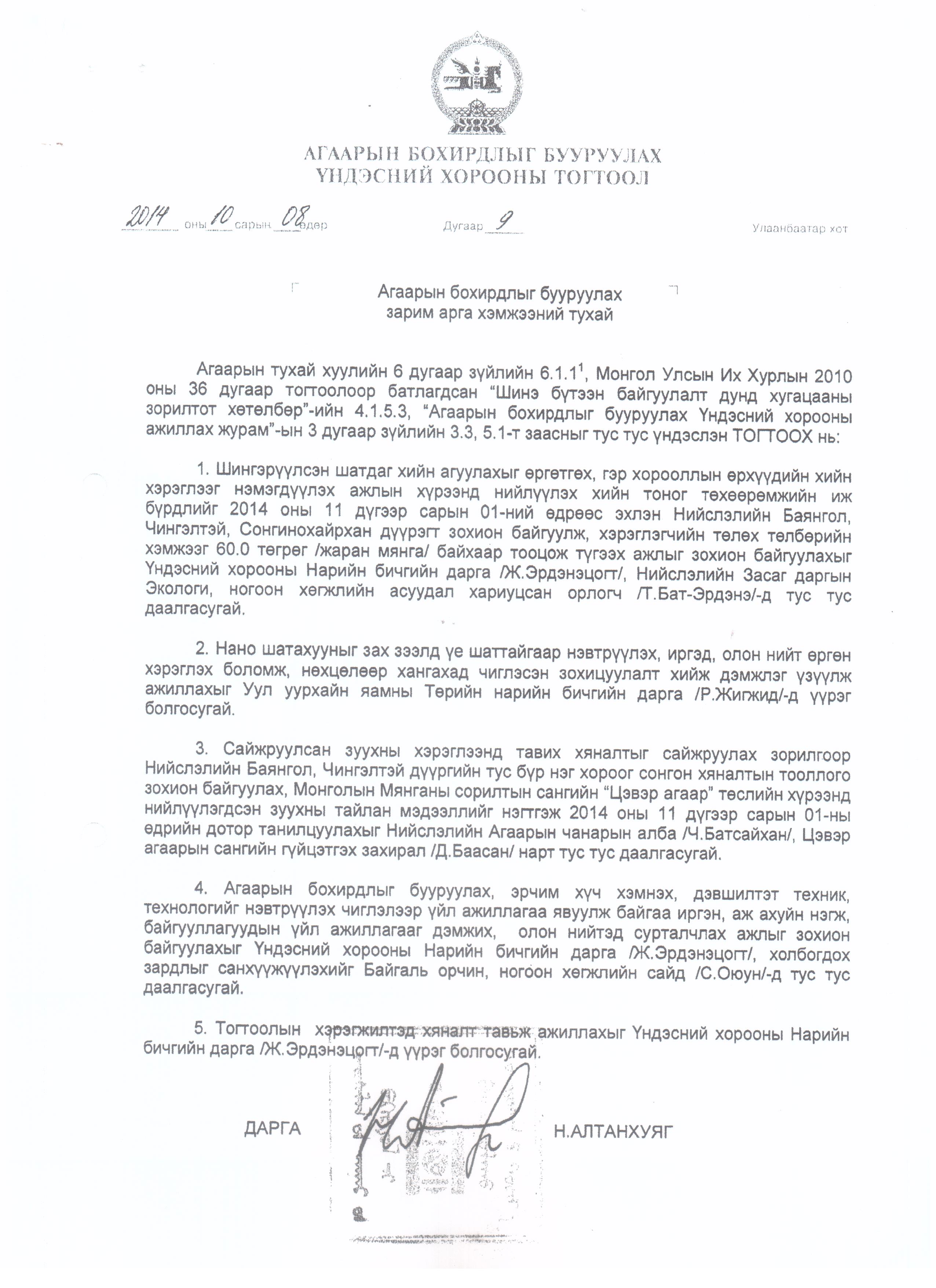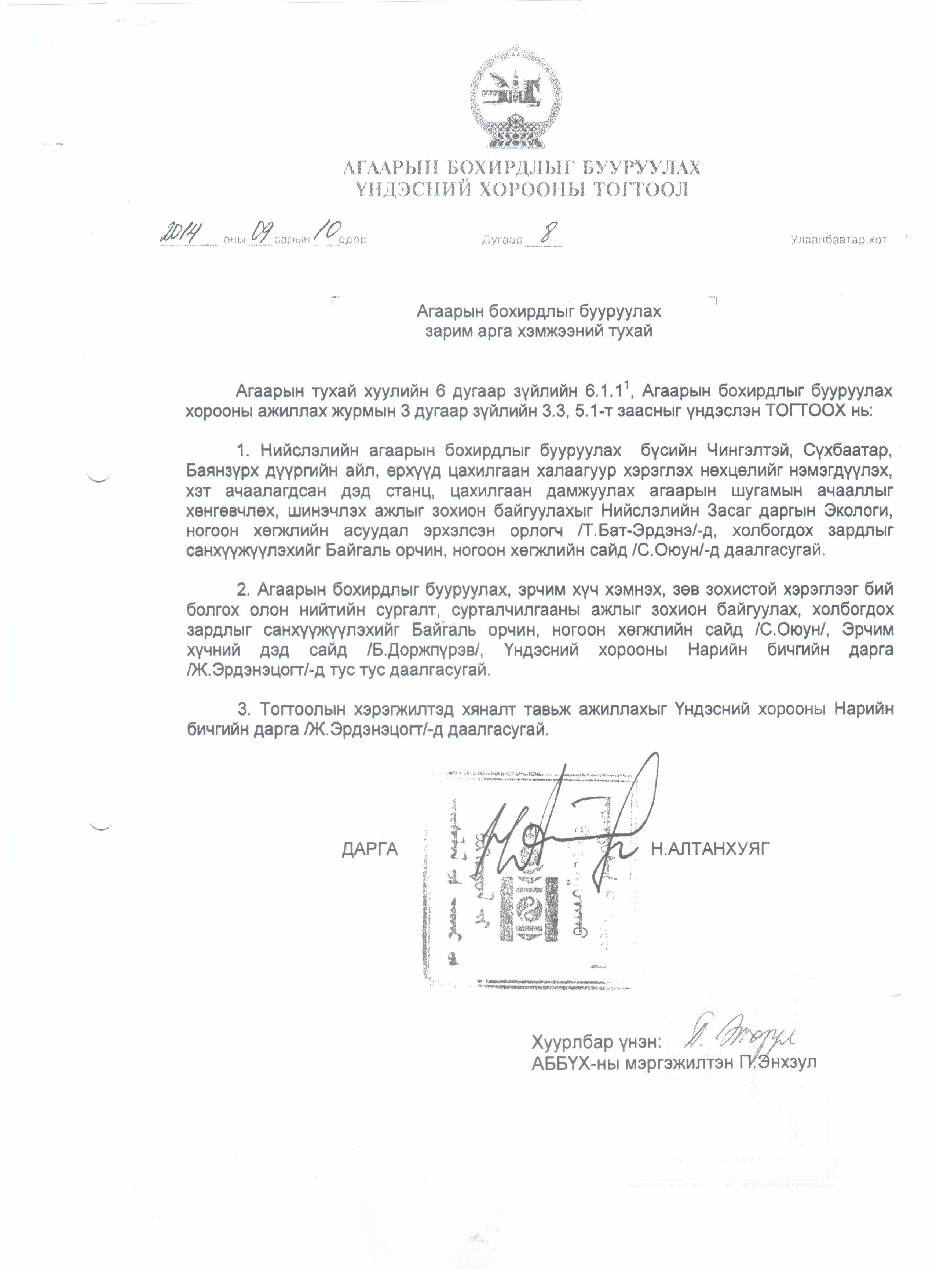 АГААРЫН БОХИРДЛЫН ОЛОН УЛСЫН ХУРЛААС ГАРСАН ЗӨВЛӨМЖ