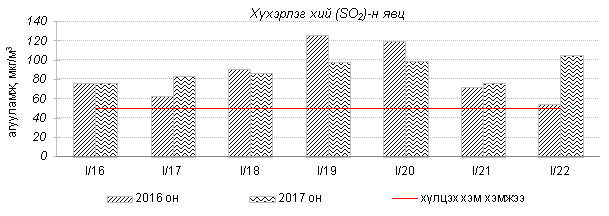 Улаанбаатар хотын агаарт түгээмэл бохирдуулах бодис хүхэрлэг хий /SO2/, азотын давхар исэл /NO2/, тоосонцор /PM10, PM2.5/, нүүрстөрөгчийн дутуу исэл /CO/, озон /O3/-ы агууламжийг тодорхойллоо.