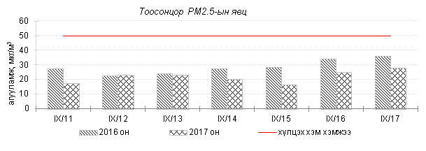 Улаанбаатар хотын агаарт түгээмэл бохирдуулах бодис хүхэрлэг хий /SO2/, азотын давхар исэл /NO2/, тоосонцор /PM10, PM2.5/, нүүрстөрөгчийн дутуу исэл /CO/, озон /O3/-ны агууламжийг тодорхойллоо.