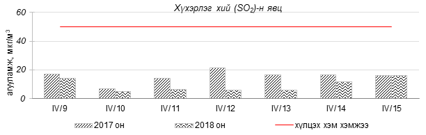 Өнгөрсөн 7 хоногийн агаарын чанарын хяналт шинжилгээний дүнгээр Улаанбаатар хотын хэмжээнд агаарын чанар ихэнх өдрүүдэд “Хэвийн” болон “Бага” зэргийн бохирдолтой байсан байна. 4 дүгээр сарын 13-нд 7-9 мм хэмжээний тунадас орсонтой холбоотойгоор агаар дахь PM2.5, PM10 тоосонцрын 7 хоногийн дундаж агууламж 2017 оны мөн үетэй харьцуулахад 36-42%-иар бага байсан бол 24 цагийн дундаж хамгийн их агууламж агаарын чанарын стандартаас 1.3-1.8 дахин их байна. Дэлгэрэнгүй мэдээг хавсралтаас үзнэ үү.