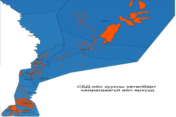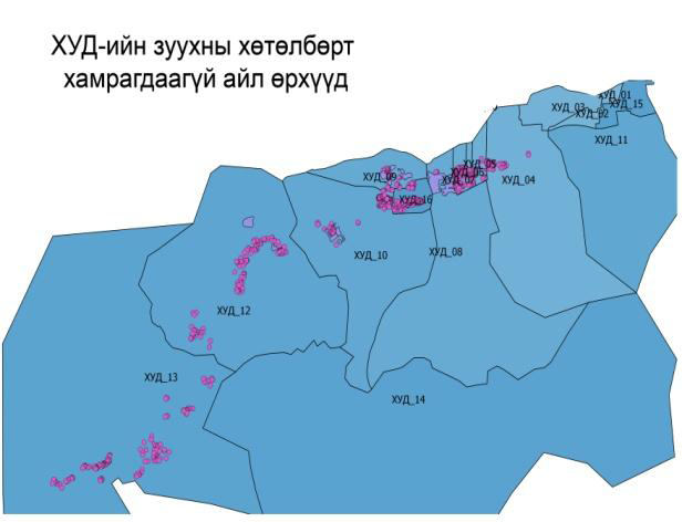 Зураг № 3. “Quantum GIS” програм дээр зуух аваагүй өрхүүдийг тэмдэглэв.